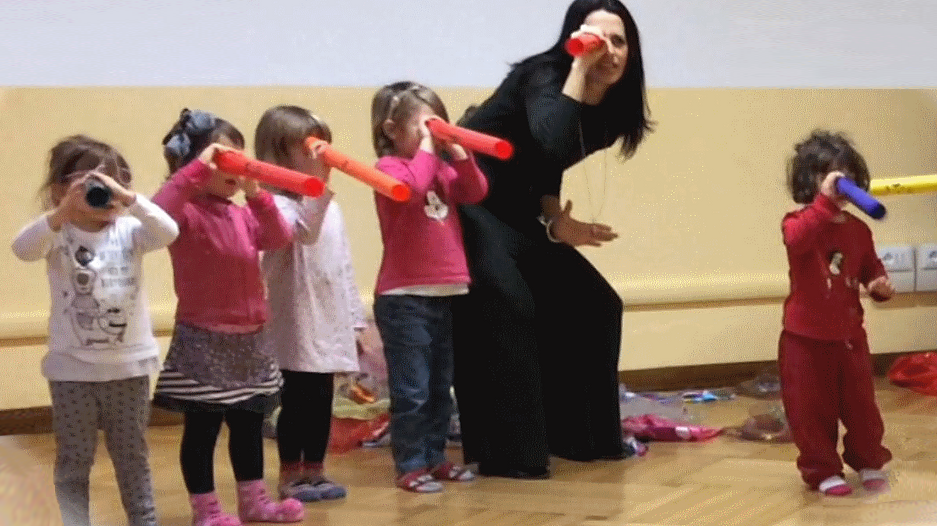 La musica come linguaggio nei primi mesi di vita attraverso l'ascolto del corpo, della voce e dell'esplorazione strumentale. Un viaggio con una valigia piena di ricchezze già esistenti dalla nostra creazione, che si sviluppano, si modificano con la conoscenza, fino a scegliere la strada musicale che più si adatta alla nostra emotività. Una giostra che gira dando luce ai colori, agli oggetti, agli strumenti, alle musiche, alle danze e alle voci dei genitori che vivono questa esperienza insieme ai loro bambini.